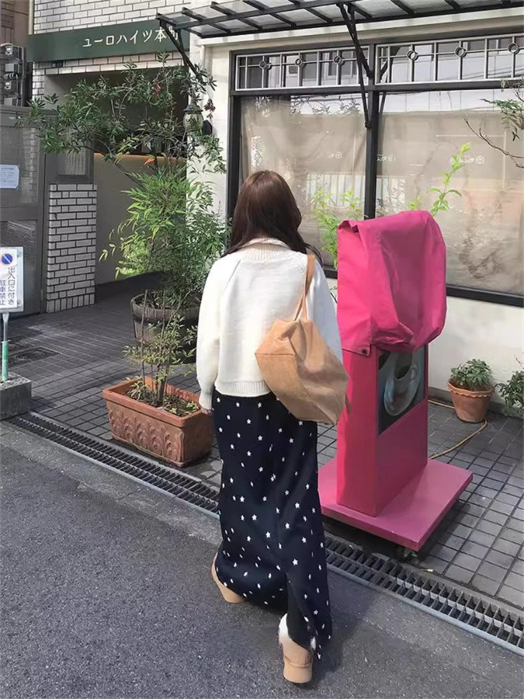 2025 Faldas Mujer De Moda Fashion Thicked Skirt Korean Long Skirts Women Elastic Waistband Bandage Jupe Star Print Casual Saia