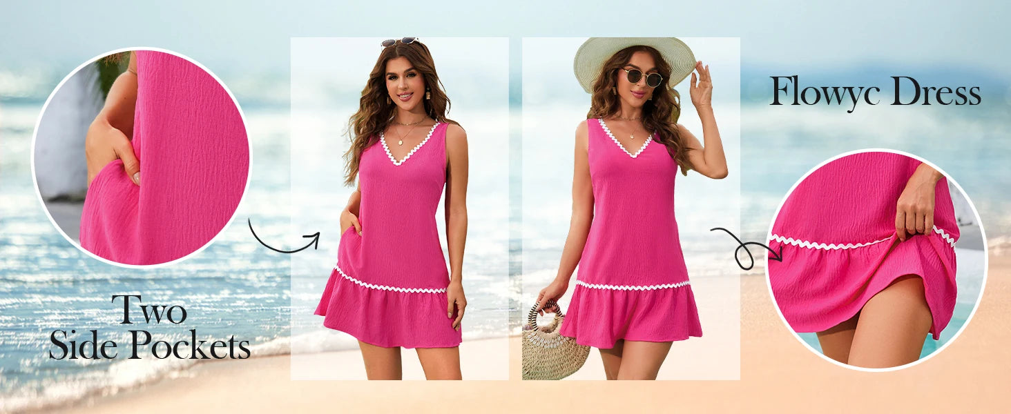 Beachside Swimwear For Women Sleeveless Lace Collar Bottom Ruffle Hem Summer Tunic Sundresses Poolparty Vacation Tank Dresses