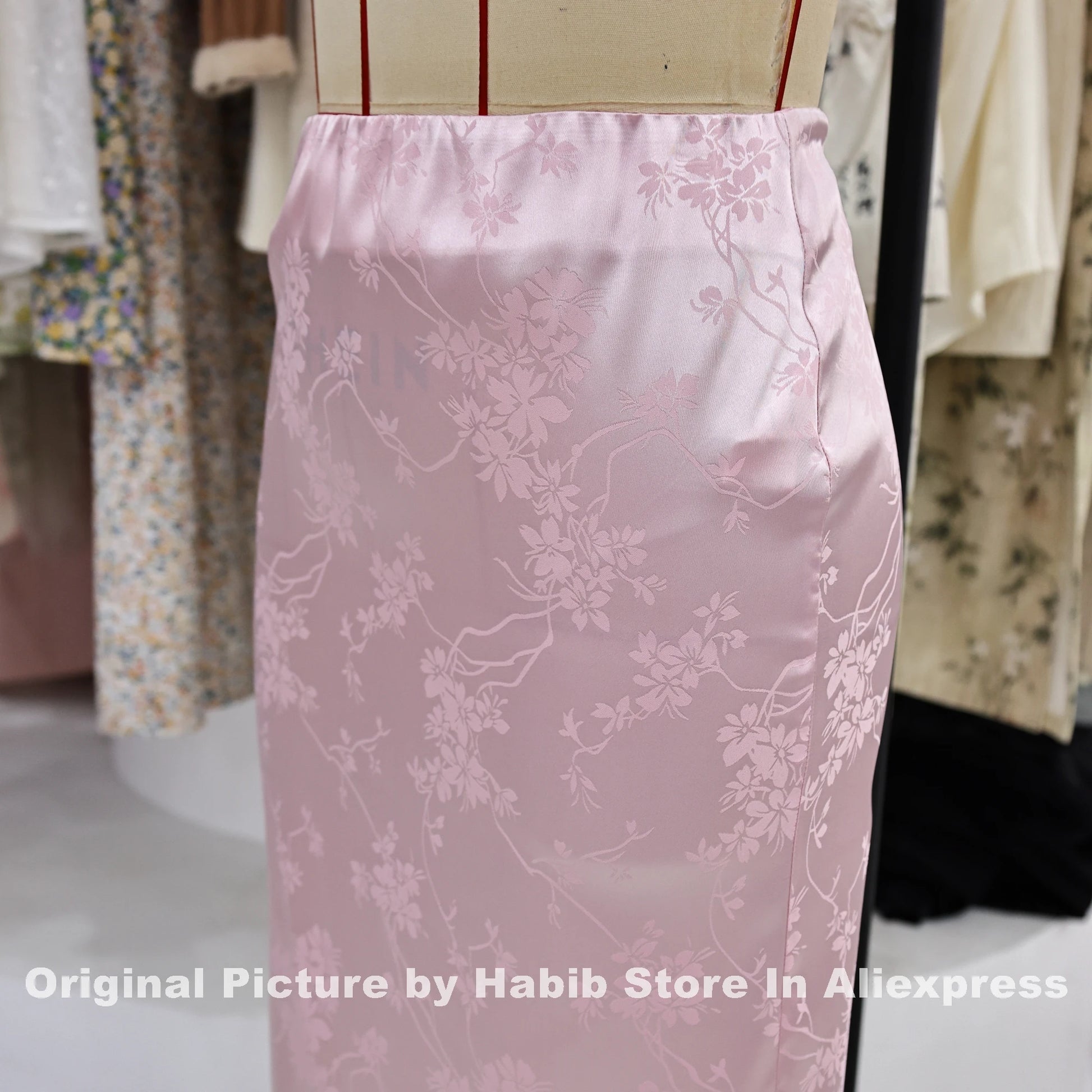 Pink Satin Skirts For Woman Elegant Slim Floral PRINT Skort Streetwear Casual Simple Straight Pencil Midi Skirt Female Like Silk
