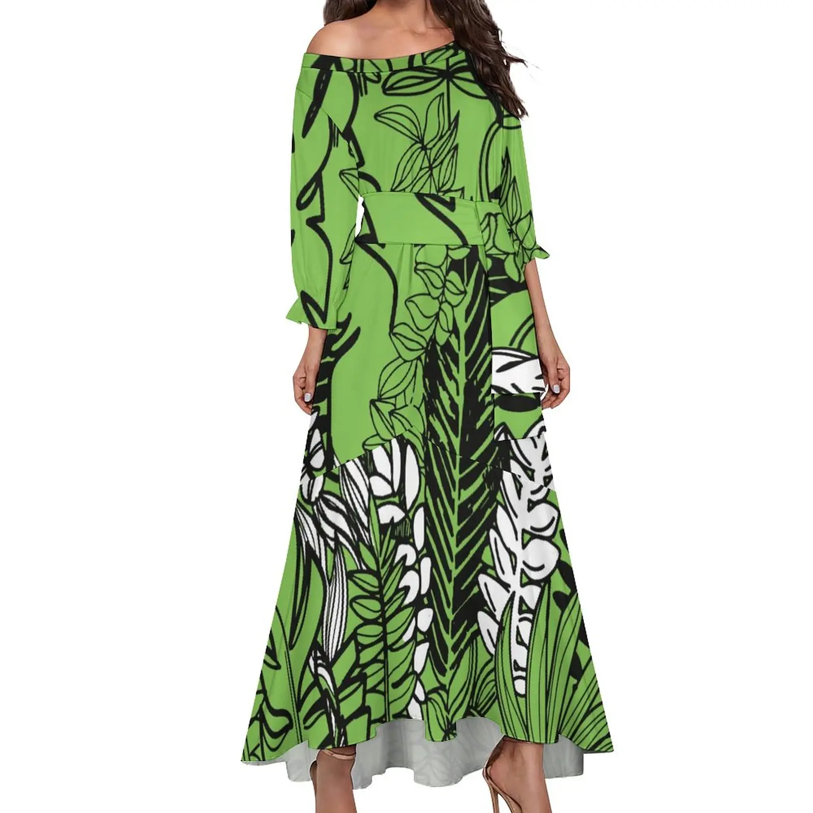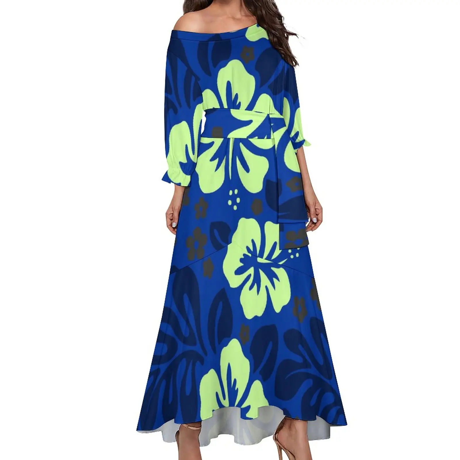 Polynesian Tribal Leaf Print Custom Ladies Elegant Plus Size Women's Dress Asia & Pacific Island Clothing Samoa Puletasi Dresses