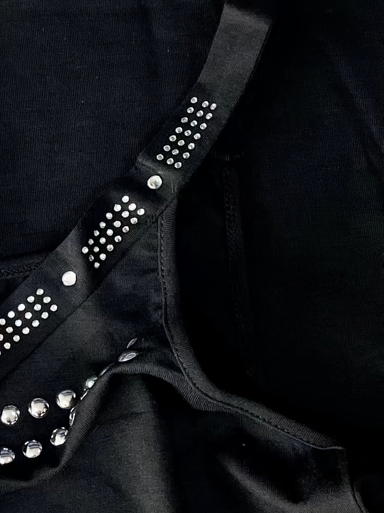 Descubre este top con escote en V y detalles de pedrería brillante que combina elegancia glamorosa con diseño moderno. Su diseño sin mangas con aplicaciones de strass que capturan la luz crea un look sofisticado perfecto para fiestas, eventos nocturnos o ocasiones especiales. Confeccionado en tejido de poliéster de punto, este top es perfecto para quienes buscan piezas elegantes que añaden brillo y sofisticación a cualquier outfit.